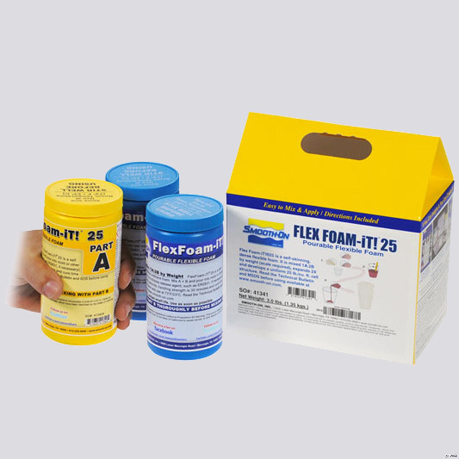 Part A and B liquids are combined, mixed and poured into a mold or other form (apply release agent if necessary). Mixture will rise and cure quickly to a solid, flexible foam. Foams vary by density and offer good physical properties. FlexFoam-iT!™ 25 is the highest density foam and expands the least.